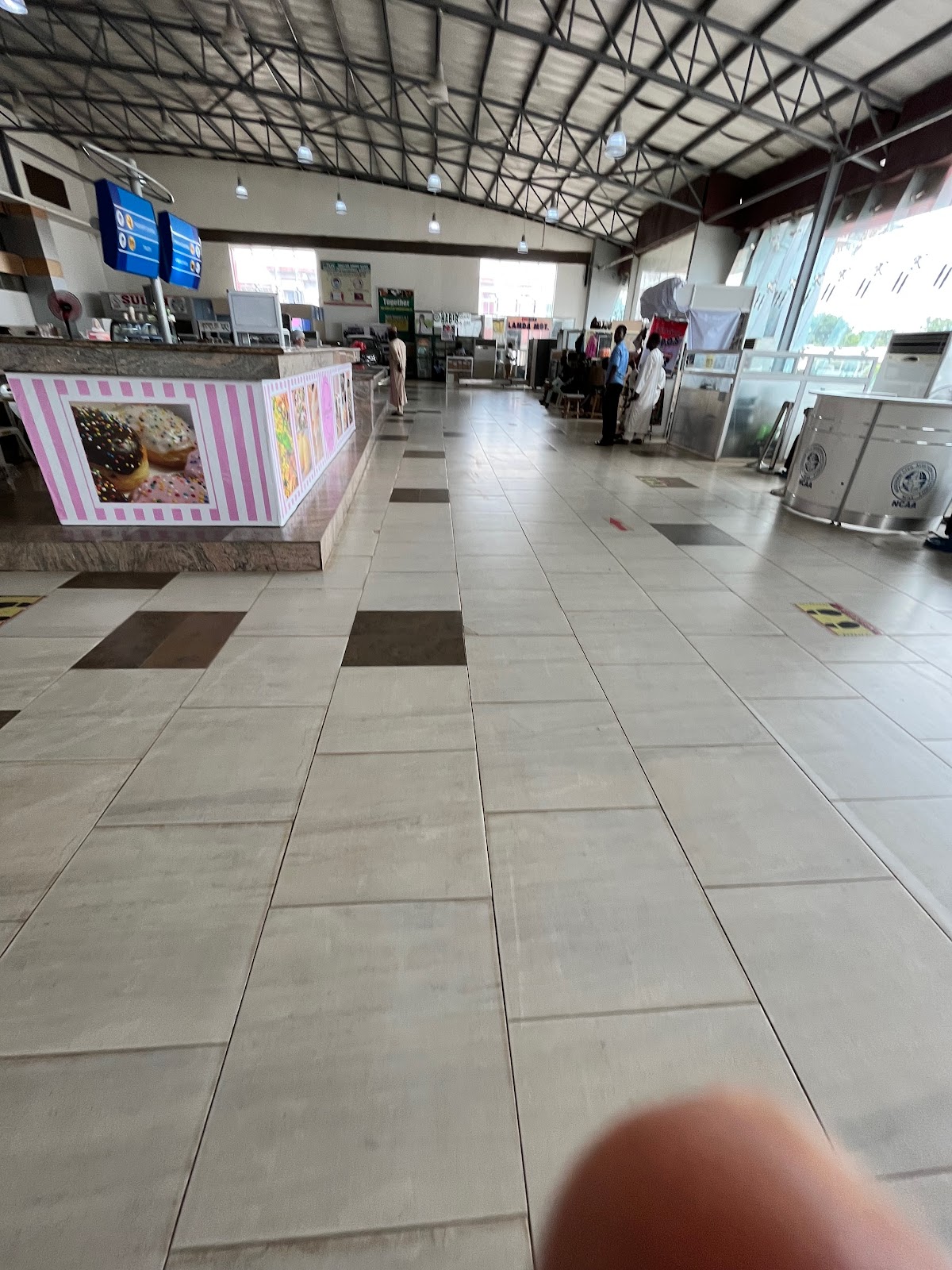 It’s an international airport with offices of some African/Middle Eastern airlines located in spaces around. Clearly defined parking spaces and a covered waiting area outside. In the local wing, the general seating area toilet is a literal mess with water all over the ground from people doing ablution for prayers. It’s much better in the checked-in section but still leaves much to be desired. They should maybe make ablution areas separate from general restroom area. You can only find snack shops here, no actual food unless you want to settle for street food sold around the airport perimeter outside. Totally not conducive for long wait periods.